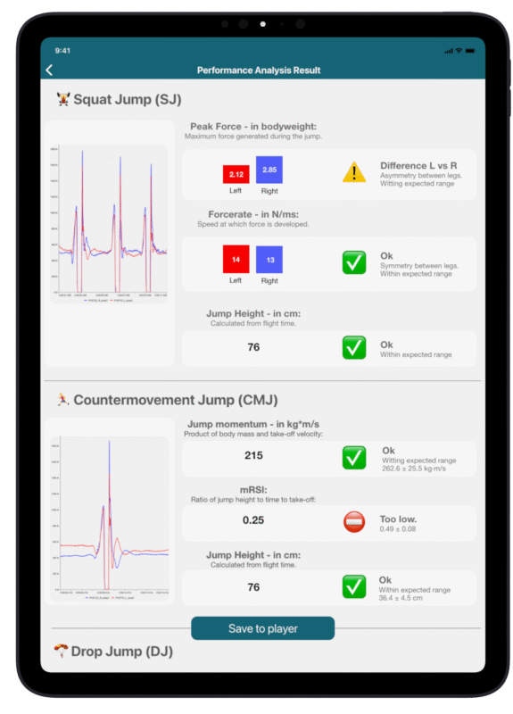 使用 loadsol pro 系统在经科学验证的多种跳跃任务中测量力学数据,为运动员的膝关节健康状况提供依据。